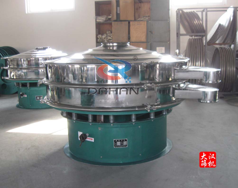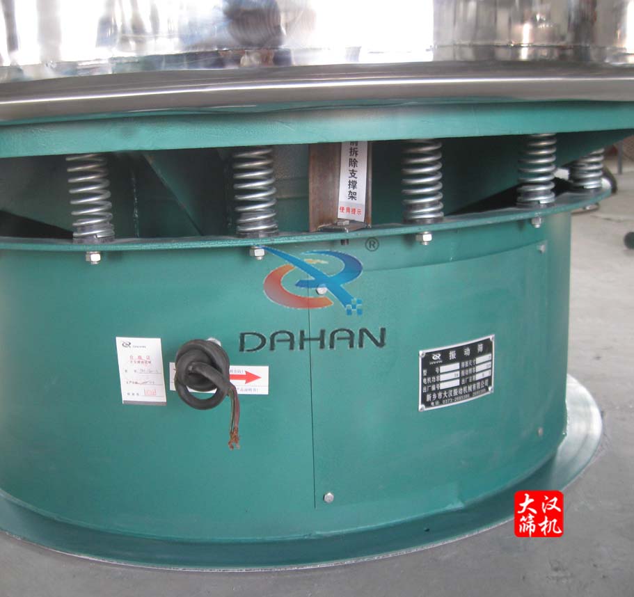 “大漢牌”淀粉振動篩為直徑1500型一層篩網二出口,振動篩框體、網架、篩網、防塵蓋等部分均為304不銹鋼材質,里外拋光處理,無毛刺,干凈衛生符合食品衛生級要求。