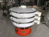 該篩分機直徑為800mm,1層篩網2個出料口。與物料接觸部分為304不銹鋼材質,底座為碳鋼材質。