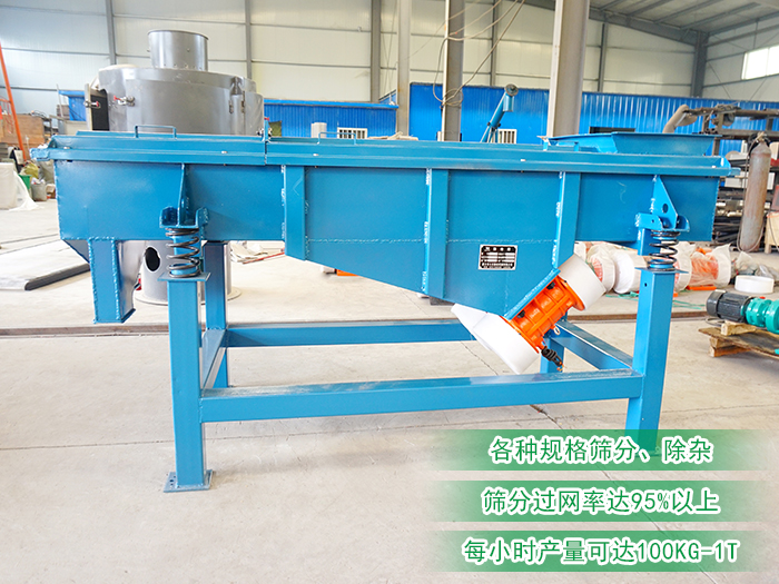 大漢機械生產的直線振動篩分機利用振動電機作為激振源,使莫來砂在篩網上被拋起,同時向前做直線運動,莫來砂在給料機上均勻地進入篩分機的進料口,通過多層的篩網產生數種規格的莫來砂,分別從各自的出口排出。以達到篩分目的。